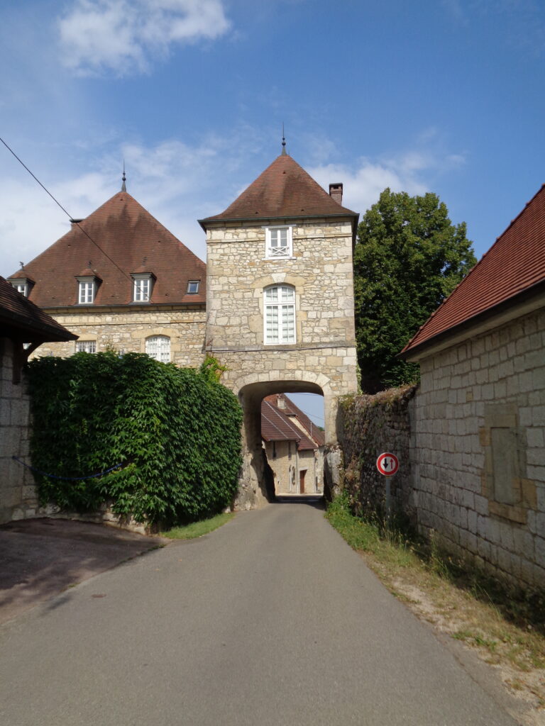 En montant la rue à droite, vous vous retrouverez à admirer la porte du Bourg-Neuf ou porte de Poligny, l’une des trois portes des anciennes fortifications du bourg , ainsi que La Maison Crécy, maintenant propriété privée avec ses magnifiques jardins bien entretenus.